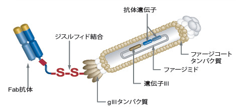 CysDisplay® Technologyは最新の効率的なファージディスプレイの方法です。この技術では、開裂可能なジスルフィド結合をファージに導入することで、高親和性抗体の効率的な溶出を可能にしております。