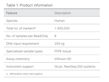TM MethylationEPIC v1.0 BeadChip のゲノムワイドなバックボーンを基に構築されており、高い後方互換性を維持しながら(