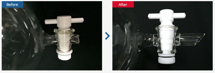 破損時のガラス・内容物の飛散防止としてフッ素樹脂をコーティングすることが可能です。