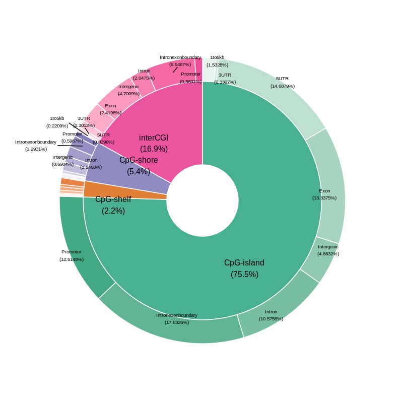 DMC・DMRの検出では、2群間以上の解析において、有意な変動のあるDNAメチル化シトシンおよび領域を検出し、アノテーションを付与します。解析結果には、シトシン/領域リストおよびその近傍遺伝子リストが含まれます。