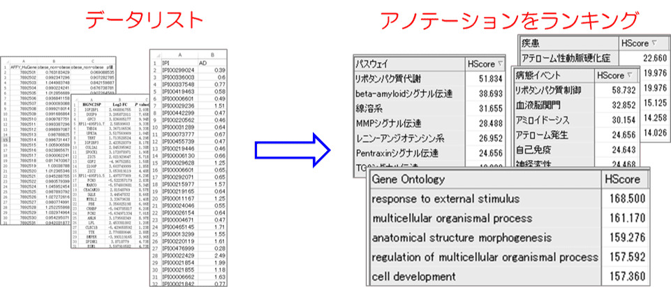 ある条件で絞り込まれた測定データを持つ分子に、どのようなアノテーションを持っている分子が多いのかを知ることができます。