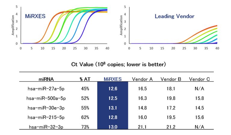 TM テクノロジーでは既存製品と比較して、高い増幅効率を実現し微量なmiRNAを検出することが可能です。