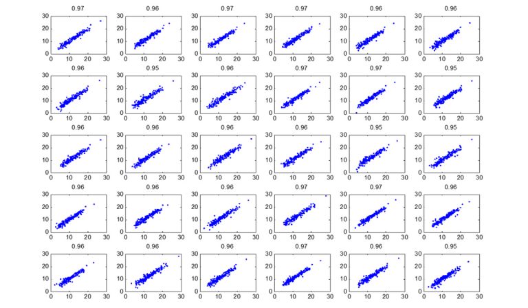 2つの異なる研究室において、異なるRNA精製法と異なる測定機器を用いて1年以上にわたって測定した結果について同等性試験を行ったところ、30のがん患者血清から得られた200以上のmiRNAに関し、相関係数は0.92~0.96であり、非常に高い再現性が得られました。(