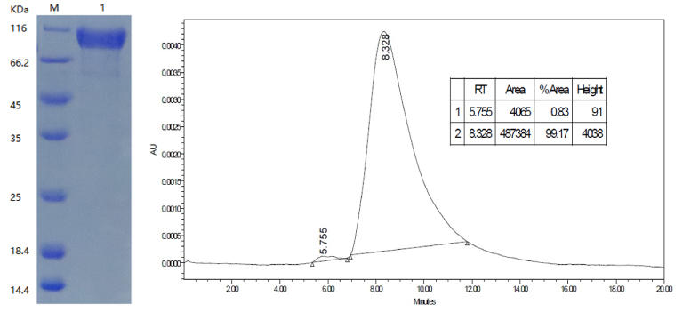 SDS-PAGEおよびSEC-HPLCにより、精製タンパク質の純度がかなり高い(>99%)ことを確認した。