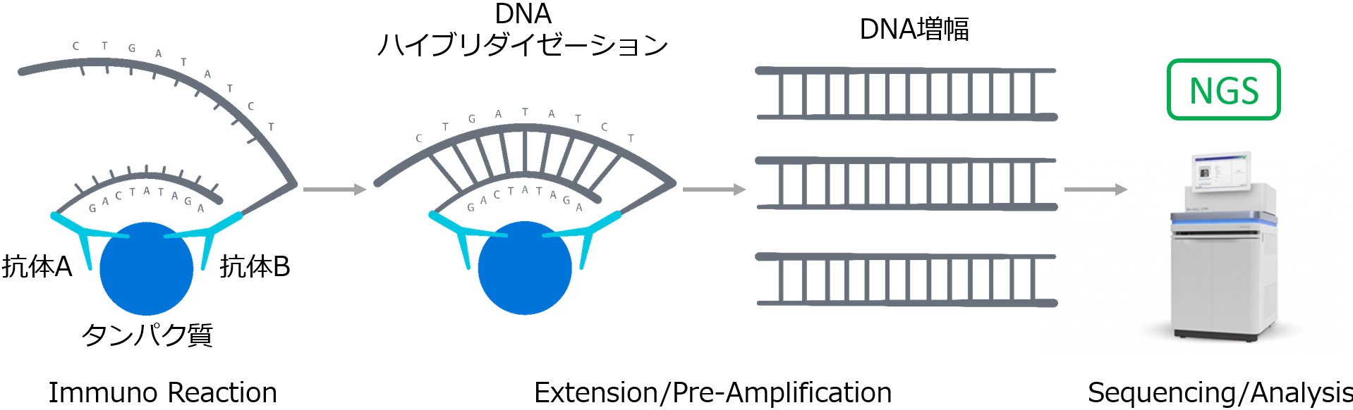 ®はProximity Extension Assay(PEA法)による特異性の高いイムノアッセイと次世代シーケンサーを組み合わせた手法で、高感度でハイスループットな解析を実現します。