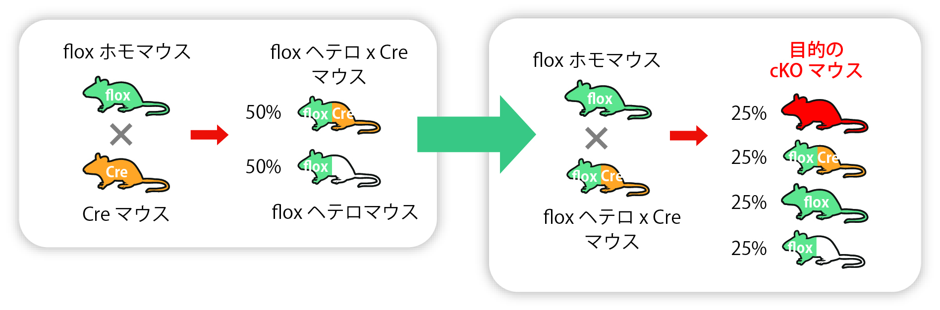 floxマウス×Creマウス→ コンディショナルノックアウト(cKO)マウス(