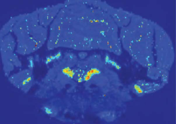 様々な組織切片からインタクトな分子、アミノ酸、代謝物、薬物、脂質、およびタンパク質を検出するために、マトリックス支援レーザー脱イオン化(MALDI)技術を使用します。MALDI イメージングは、数千の分子を一度に検出できる感度の高い堅牢な技術です。より定量的な分析を実現するためのプロセスとソフトウェア(MultimagingTM )を開発し、この数年間で MALDI イメージングを使用して数百の医薬品の局在および定量解析を行い、また本分野において 100件以上の論文を出版しました。