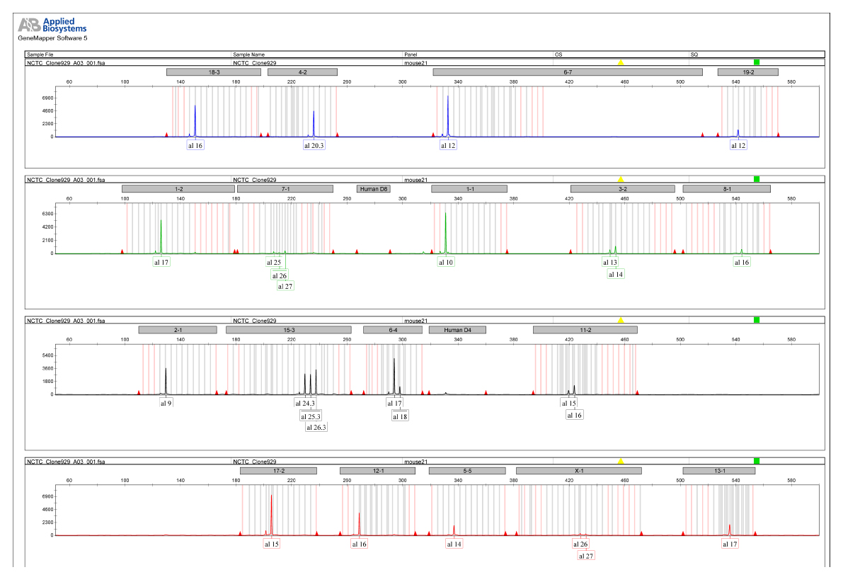 マウス細胞株の同定や認証、同種細胞株内のクロスコンタミネーションの検出に