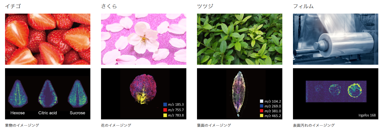 バイオマーカー探索や代謝物測定といった医学分野、薬物動態解析やドラッグデリバリーシステム(DDS)といった薬学分野、食品中の成分分布や植物中の農薬分布といった農学・環境分野の他、幅広い分野で利用いただけます。