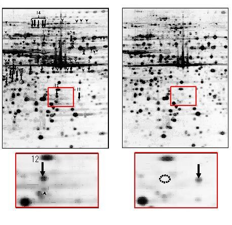 * 取得されたリン酸化タンパク質を二次元電気泳動によって分離したところ、LIFの有無によって変化する