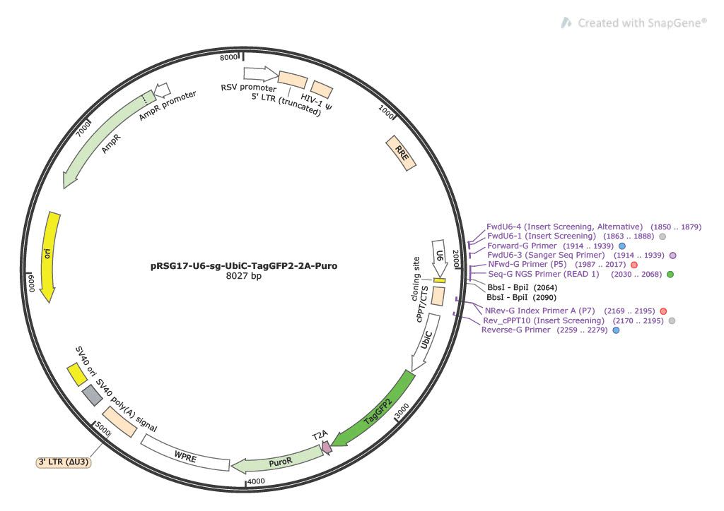| pRSG17-U6-sg-UbiC-TagGFP2-2A-Puro | FASTA | GenBank | SnapGene |
