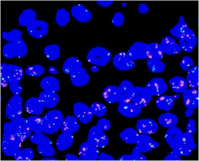 FISH(Fluorescence in situ hybridization)法によるFFPE、凍結未染スライド中のターゲットDNAの増幅、欠失、転座のシグナル検出および解析のサービスをご提案いたします。