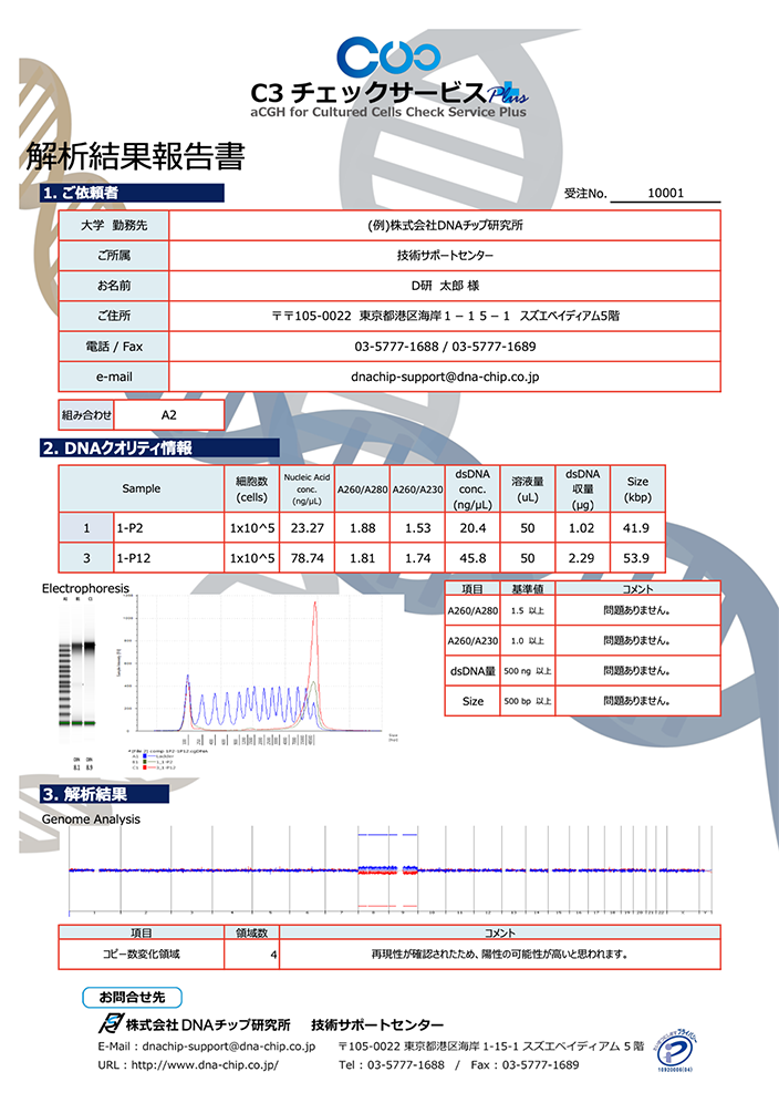 カスタムアレイCGH解析による培養細胞の品質評価サービスです。