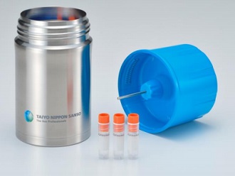 | 材質 | 【容器本体】ステンレス鋼 【ふた】ポリカーボネート樹脂 【温度センター(温度検知部)】ステンレス鋼 【バイアル保持具】発泡ポリエチレン 【液体窒素吸着材】樹脂加工品 |