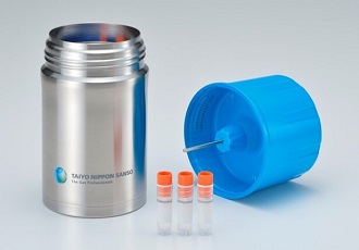 | 材質 | 【容器本体】ステンレス鋼 【ふた】ポリカーボネート樹脂 【温度センター(温度検知部)】ステンレス鋼 【バイアル保持具】発砲ポリエチレン 【液体窒素吸着材】樹脂加工品 |