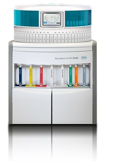 ベンチマークULTRA PLUSは、免疫染色(IHC)、蛍光免疫染色、in situ hybirization(ISH)、Dual Color ISH(DISH)において、ベーキング・脱パラフィンから対比染色までのすべて工程を自動化します。様々な検査オーダーに柔軟に対応し、操作者の負担を軽減するため、染色中のスライド、試薬、バッファーの追加、LEDライトによる機器ステータス管理やタッチパネル、廃液分離などの機能が搭載されています。医療機器製造販売届出番号:13B1X00201000088