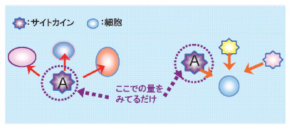 被験物質(サイトカイン)によって変化する因子をターゲットとし、その因子の“生物活性量の変化”を指標として、被験物質の生物活性の評価を実施いたします。