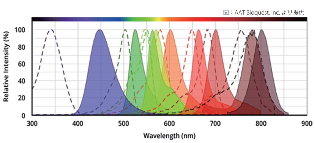 2.φ =水性緩衝液(pH7.2)における蛍光の量子収率。