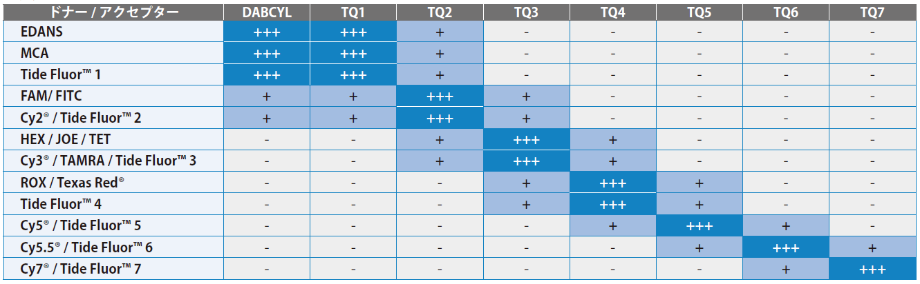FAM TAMRA Tide Fluor BHQ Dabcyl Dansyl |