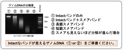 * 電気泳動法などを利用し、RNAのコンタミネーションがないこと、gDNAが分解していないことをご確認ください。(