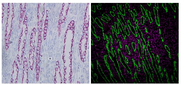 - 明視野ではDABとFast Redを使用した単染色もしくは2重染色が可能で、蛍光では3重染色が可能です