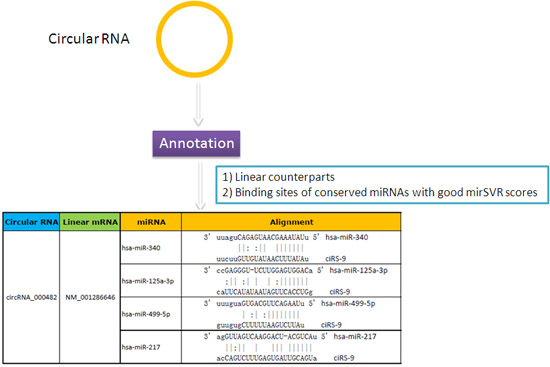 | Circular RNAソース | You Xintian’s circRNAs[7]: 12,298 Mouse circRNA orthologs: 1,668 Human circRNA orthologs: 179 |