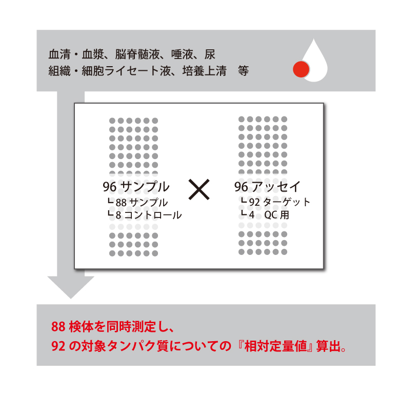 血清・血漿中のバイオマーカーを相対定量。92因子 x 88 検体を同時測定。