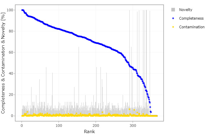 | ccSAG解析(*1) | 同一株のSAGを統合し、 冗長性のないドラフトゲノムを作成 ・同一株の同定 ・キメラリード除去 ・アセンブル ・ドラフトゲノム品質評価 ・生物種推定 ・遺伝子推定 |