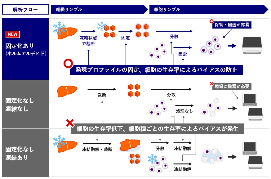 | 凍結細胞 | Flex、3’RNA-Seq、レパトア解析、ロングリード、マルチオーム | 1.0×106 cells以上 | 生存率80%以上 | -150℃ (ドライシッパー) |