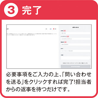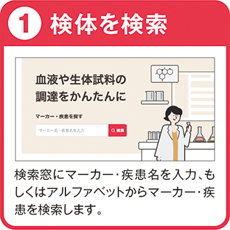 簡単3ステップで検体情報を確認でき、詳細な検体情報や在庫状況をお問い合わせ可能です。