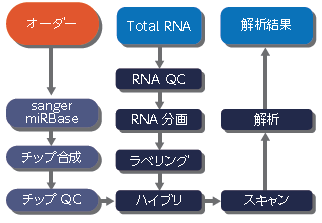 ™ in situ合成法を使用して、最新のmiRBaseデータを基にmiRNAアレイを作成し、発現解析を行うサービスです。新規miRNAを探索される方には、最大で3,918プローブ配列を搭載可能なnon-coding RNA受託サービスがおすすめです。