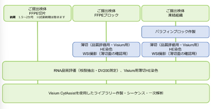 - 検体は凍結組織やFFPEブロックでも受け入れ可能、切片作製サービスあり(オプション)