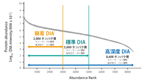 | 標準 DIA プロテオーム解析によるタンパク質発現・相対定量解析 内容:発現タンパク質の同定ならびに相対定量解析 方法:LC-MS/MS(DIA) 参考検出数:4,000~6,000 タンパク質 必要サンプル量:タンパク質 40μg 以上、 細胞 5 x105 個 以上、組織 10mg 以上、血清 / 血漿 1μL 以上、 尿 200μL 以上 |