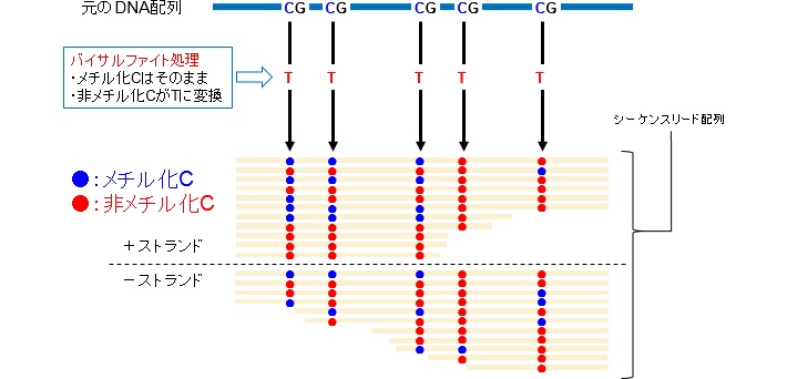 | 機能 | ・バイサルファイト処理DNAを考慮したマッピング ・アンプリコン内の各CpGポジション毎のメチル化率を算出 ・リード毎のメチル化状態を解析して出力 |