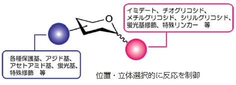* 誘導体の例: イミデート、チオグリコシド、メチルグリコシド、シリルグリコシド、アジド基、アセトアミド基、蛍光基修飾、各種保護基等