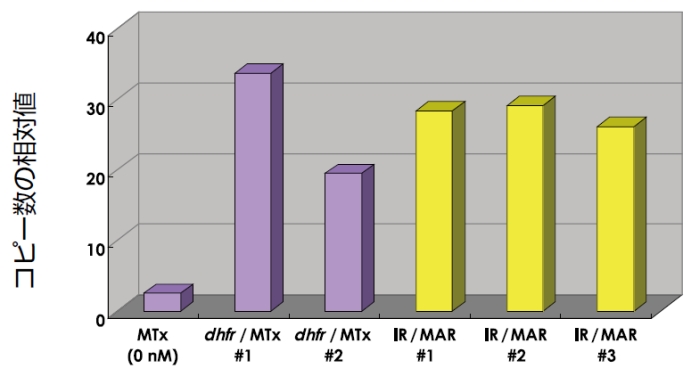 抗体医療をはじめとするバイオ医薬品の生産に用いられるdhfr/MTx法と、dhfr/MTx法のおよそ半分の期間で高発現株が得られるIR/MAR遺伝子増幅法からお選びいただけます。