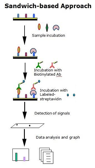 | ビオチン標識抗体(Biotinylated Ab) | 5~10μL | 「Sandwich-based Approach」では、ご準備いただいたビオチン標識抗体を、実験の都合上、1,500倍希釈して使用します。 希釈後に適切な抗体濃度になる様にビオチン標識された抗体をご準備ください。 使用する抗体によって、ターゲットとなる因子に対する交代の使用適切濃度が変わりますので、ご用意頂く抗体の製造元などにご確認ください。 また、ご送付抗体の溶液量を必ずQCシートに明記してください。 |
