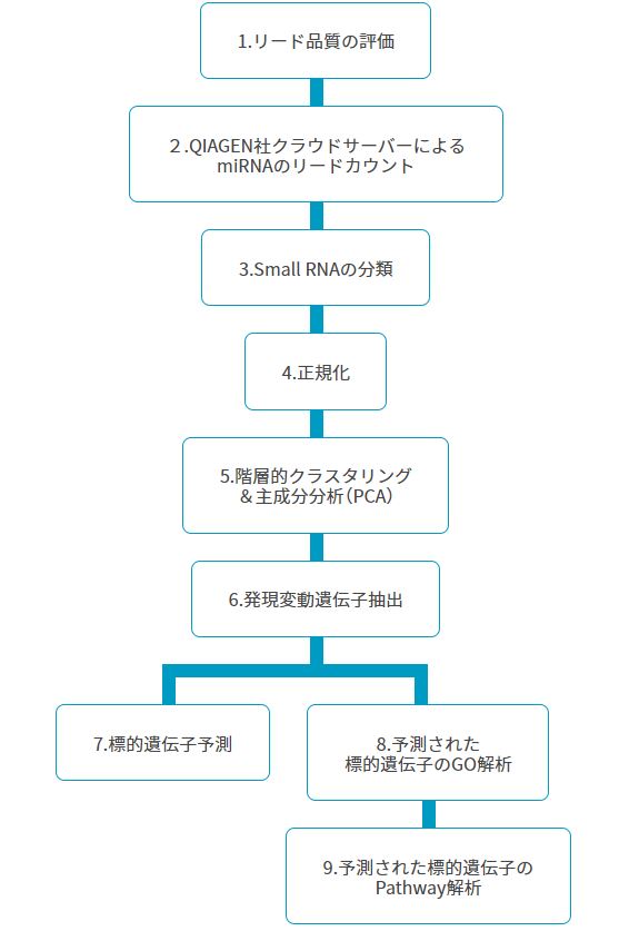 ・データ解析結果(正規化、変動miRNA抽出、標的遺伝子予測、GO解析、Pathway解析)