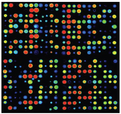 - 広範囲に網羅された抗体群:キナーゼ、ホスファターゼ、転写因子、細胞周期、ストレスおよびアポトーシス関連タンパク質に対する抗体がアレイされています。